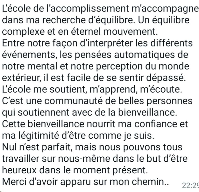 "On a envie d'apporter un témoignage parce qu'on pense que ça peut servir à plein de monde et surtout parce qu'on est ravi de faire partir de cette école [...] et parce que c'est SUPER. On a vraiment énormément de ressources très régulièrement.